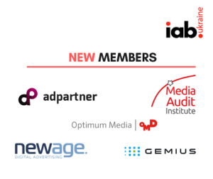 У березні в Бюро Інтерактивної Реклами Україна (IAB Ukraine) увійшли 5 компаній, серед яких AdPartner, Gemius, newage., Інститут Медіа Аудиту та Оптімум Медіа Україна. Таким чином, сьогодні союз налічує 13 компаній-учасників ринку digital-реклами України.