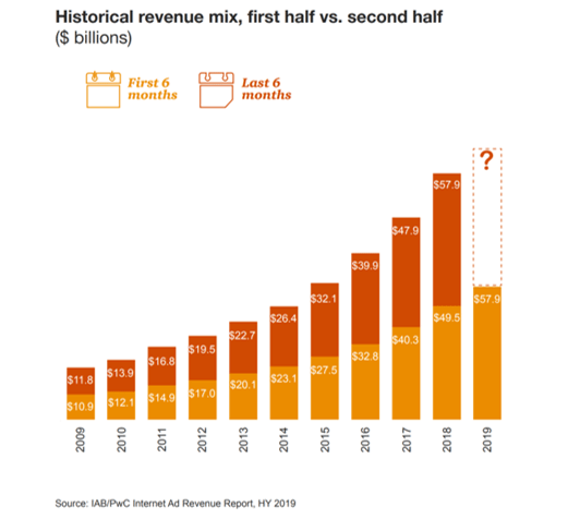 Зазвичай при прогнозуванні річних обсягів інтернет-ринку робоча група IAB застосовує коефіцієнт сезонності 40% перше півріччя – 60% друге півріччя.
